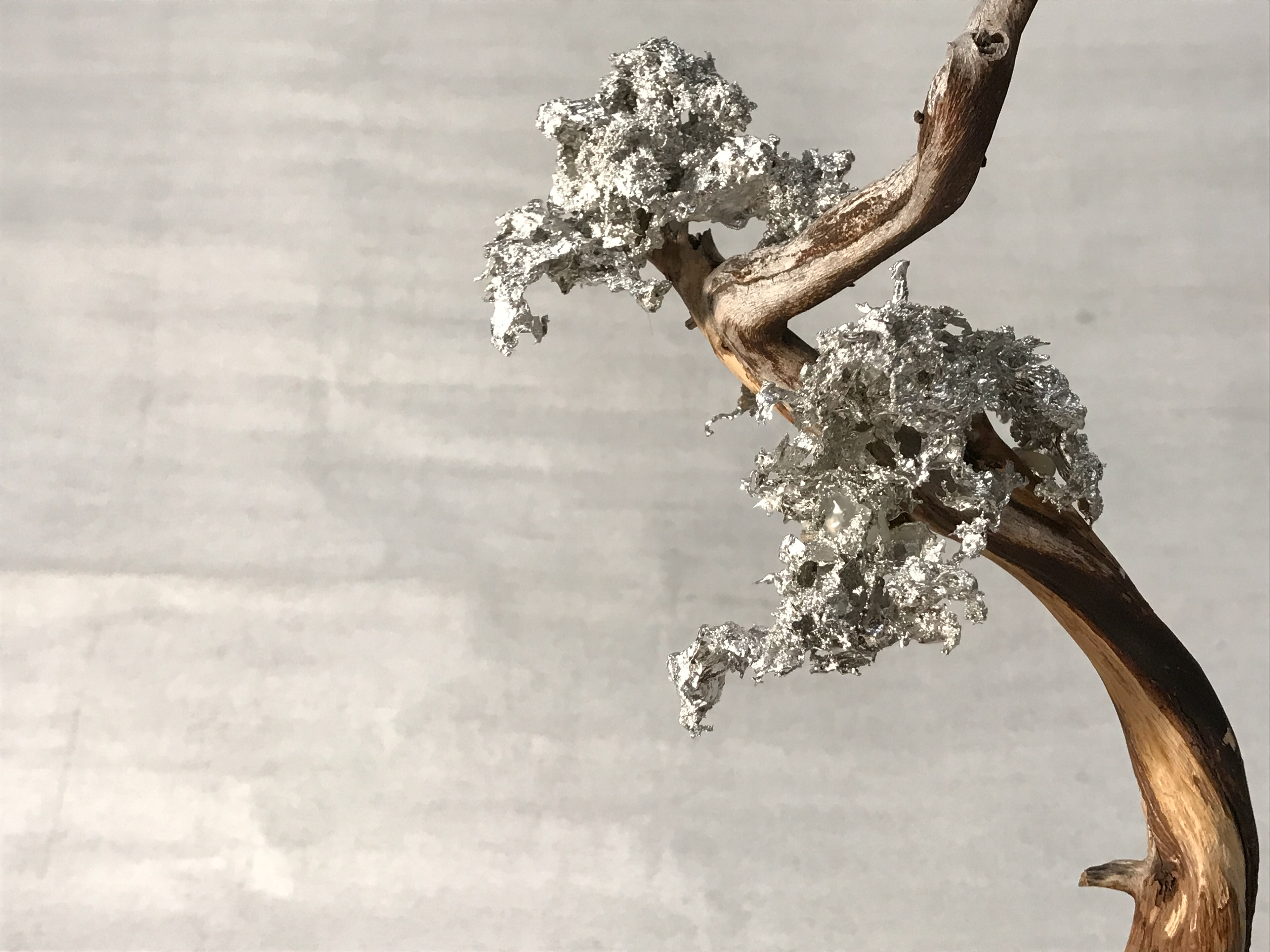 Pewter, Dry tree branch, Brass wire, Stone, Sands